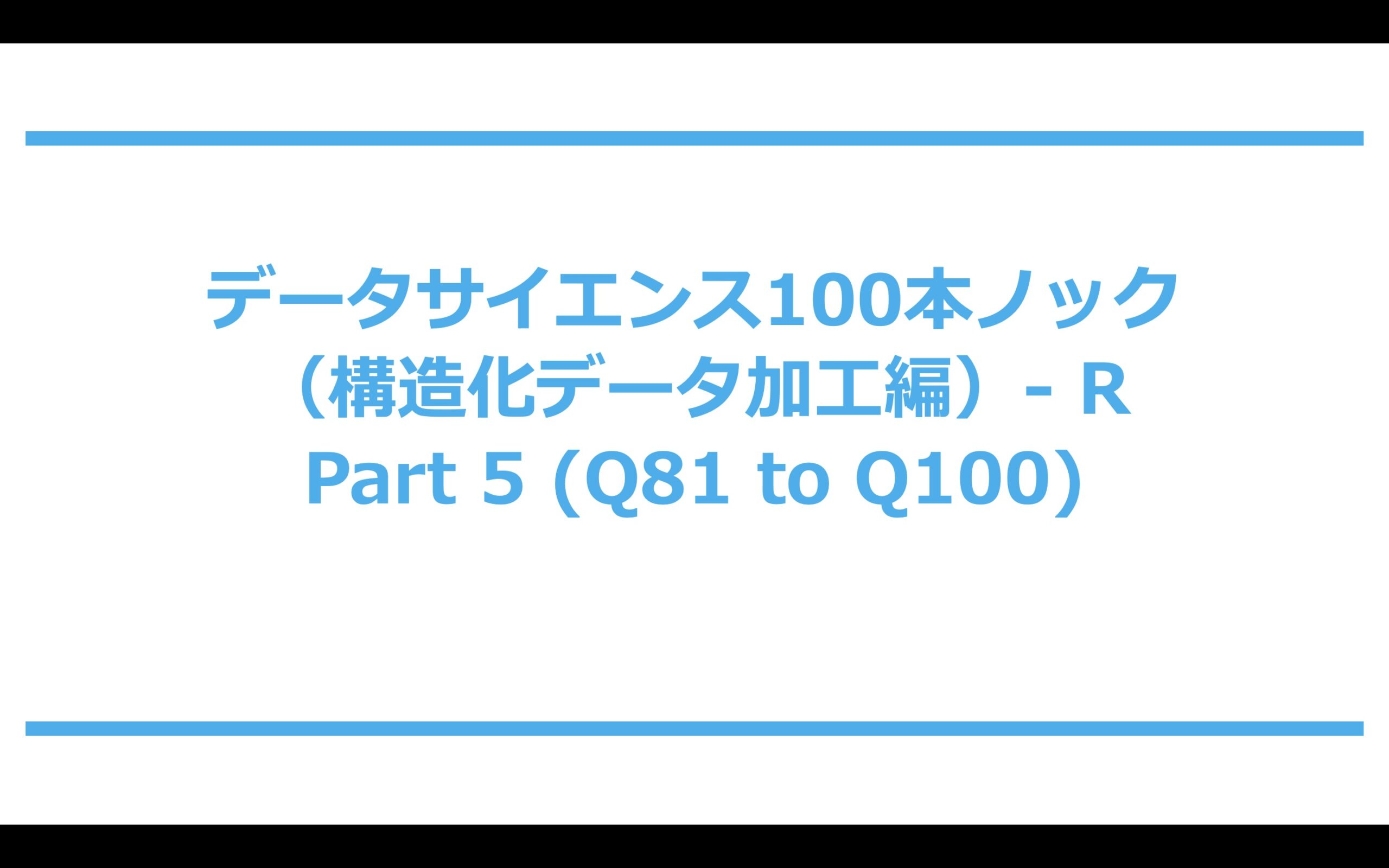 データサイエンス100本ノック(構造化データ加工編)- R Part 5 (Q81 to Q100)の解説です。