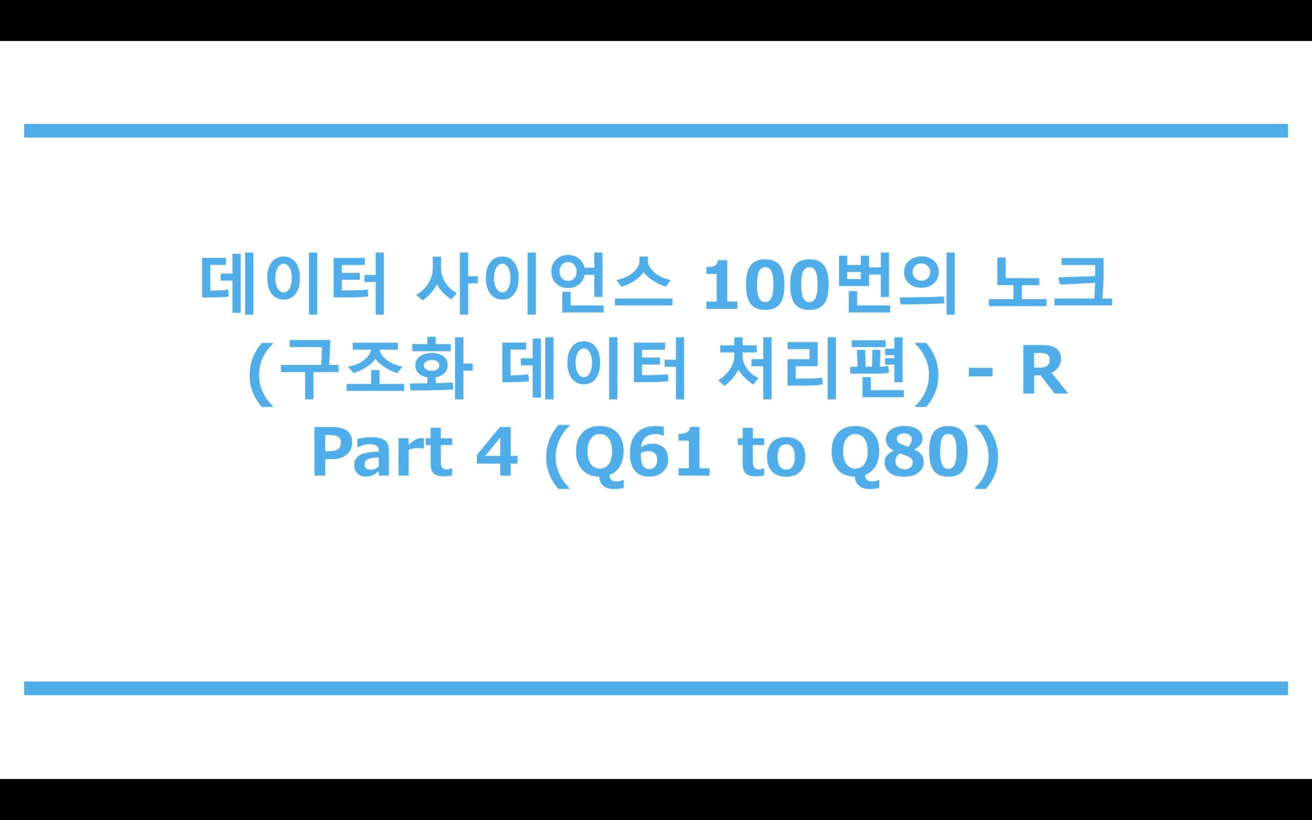 데이터 사이언스 100번의 노크(구조화 데이터 처리편) - R Part 4 (Q61 to Q80)의 해설입니다.