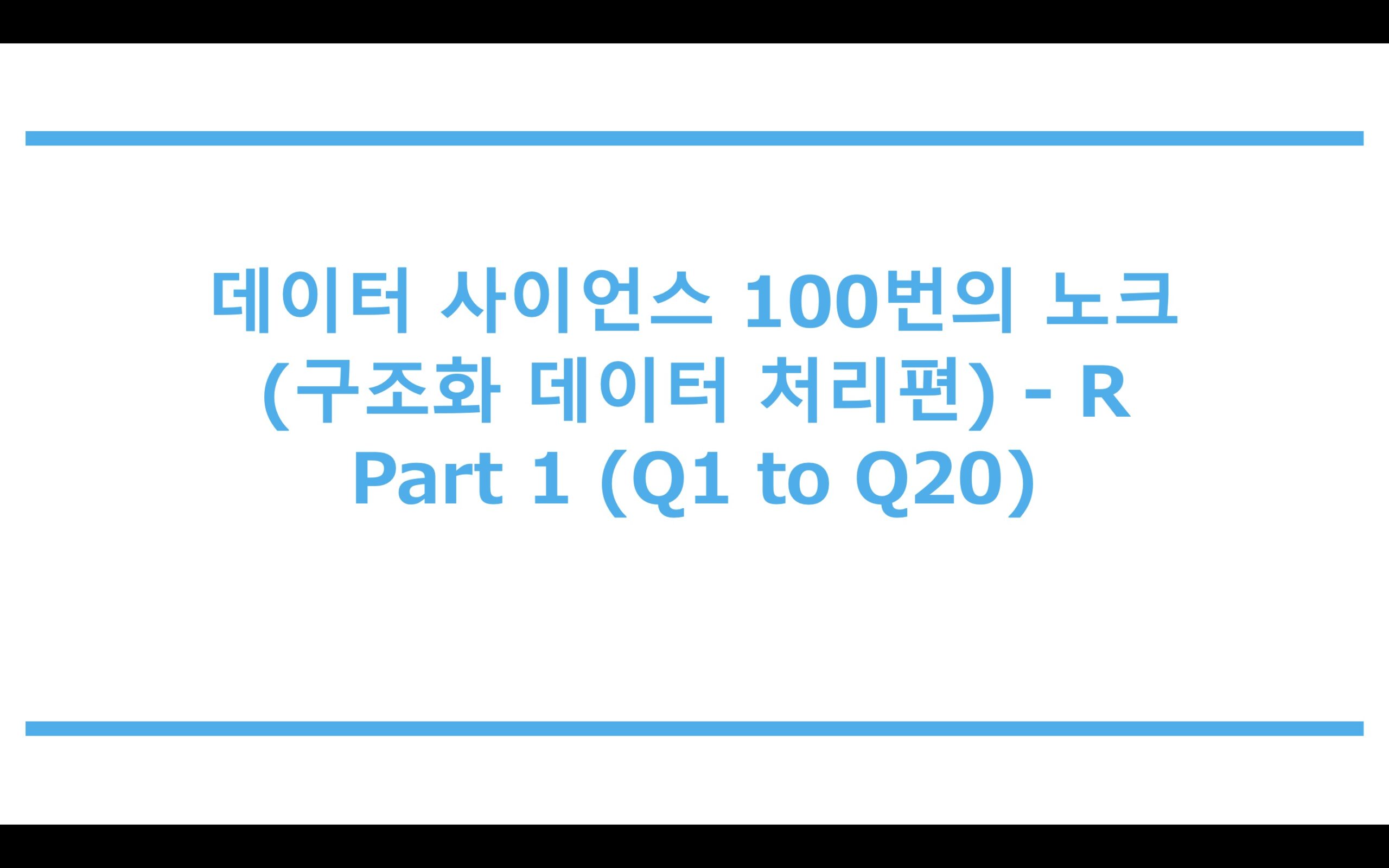 데이터 사이언스 100번의 노크(구조화 데이터 처리편) - R Part 1 (Q1 to Q20)의 해설입니다.