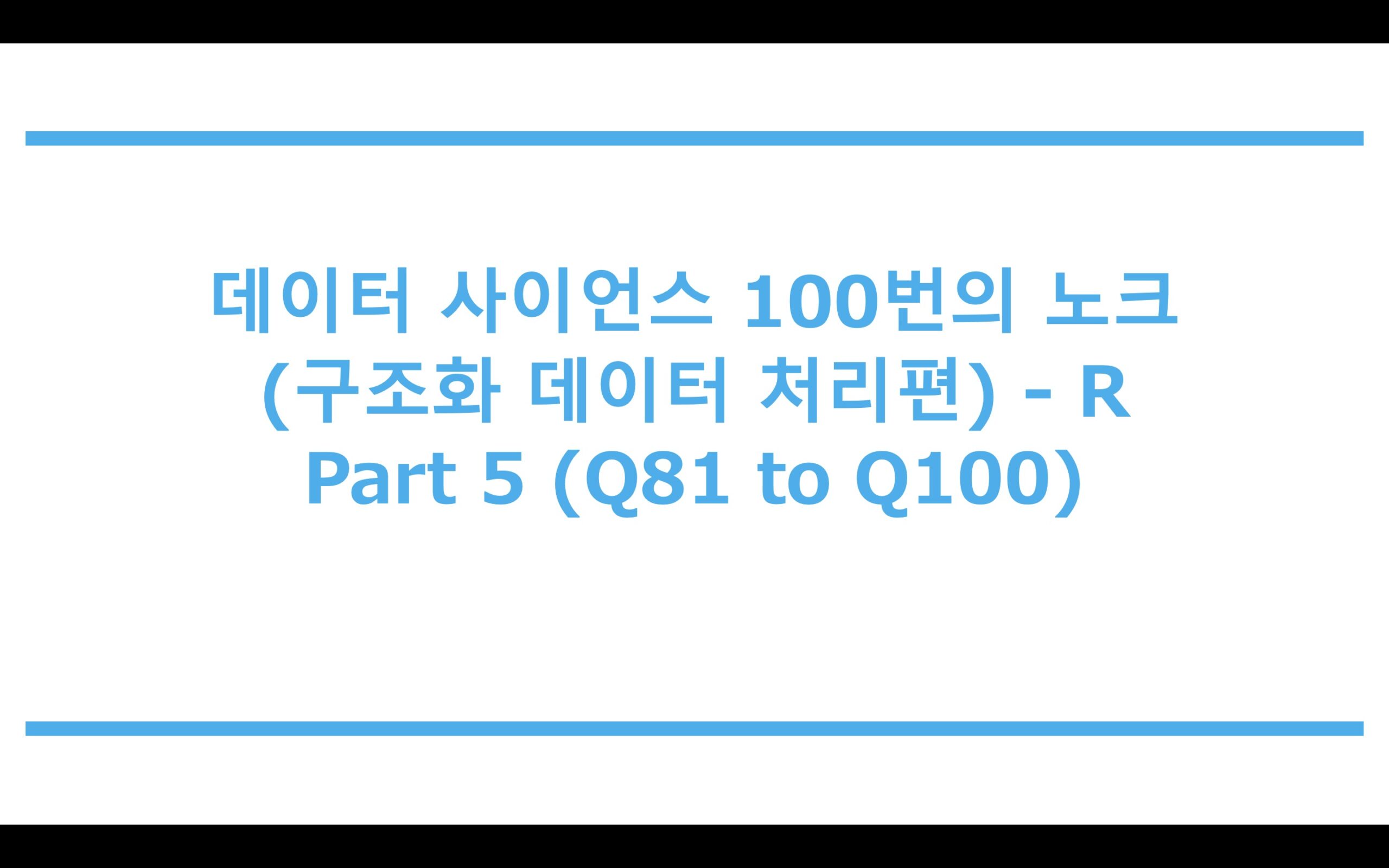 데이터 사이언스 100번의 노크(구조화 데이터 처리편) - R Part 5 (Q81 to Q100)의 해설입니다.