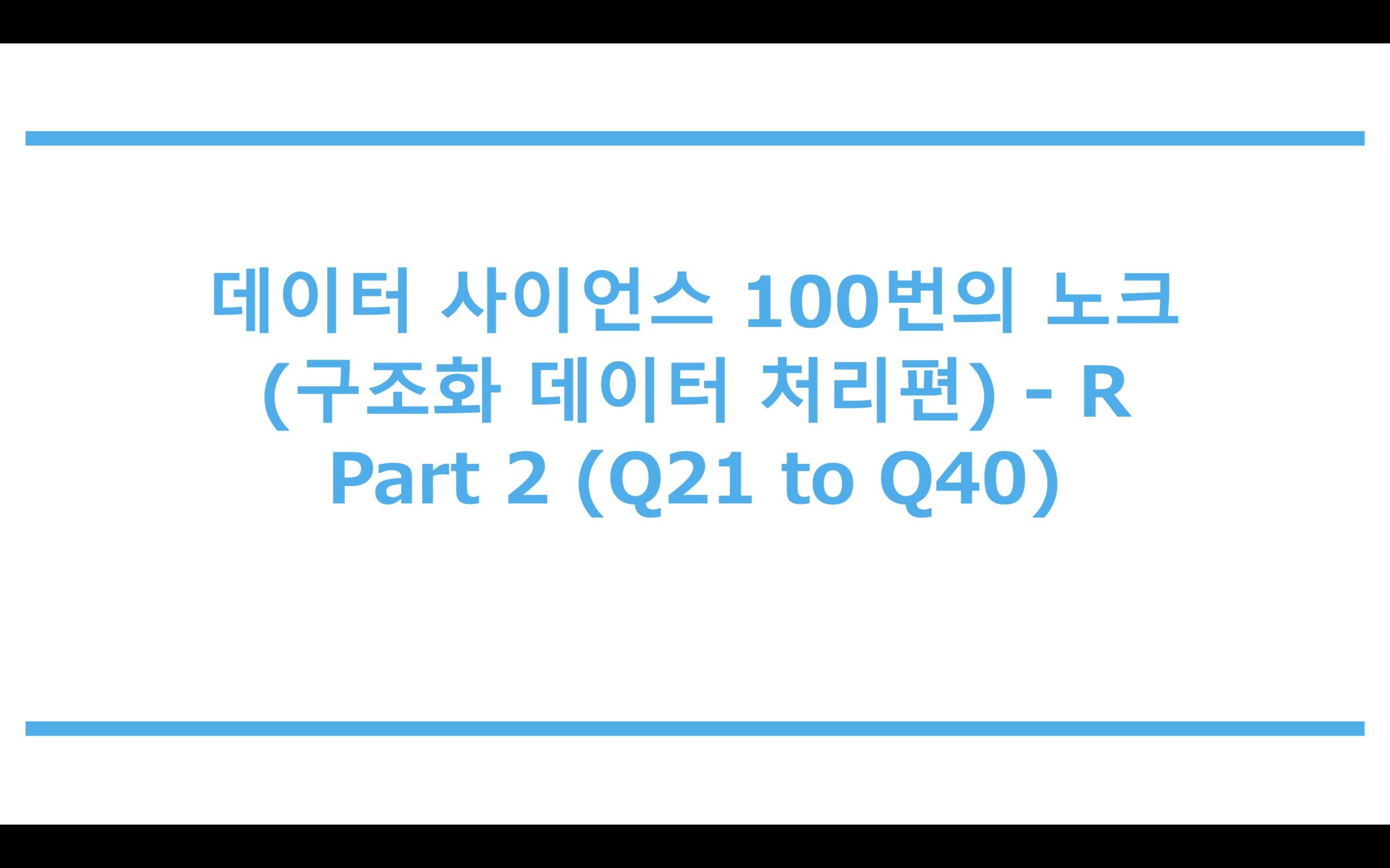 데이터 사이언스 100번의 노크(구조화 데이터 처리편) - R Part 2 (Q21 to Q40)의 해설입니다.