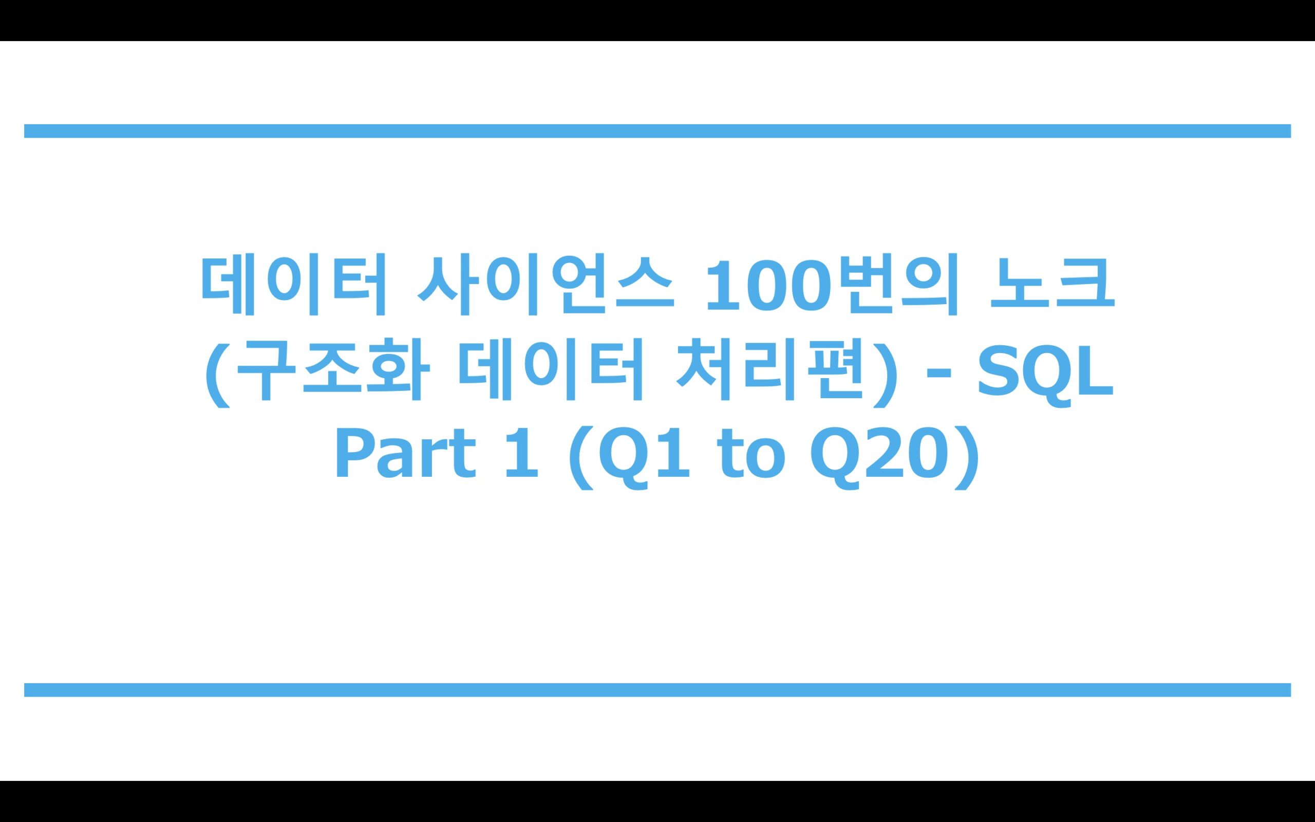 데이터 사이언스 100번의 노크(구조화 데이터 처리편) - SQL Part 1 (Q1 to Q20)의 해설입니다.