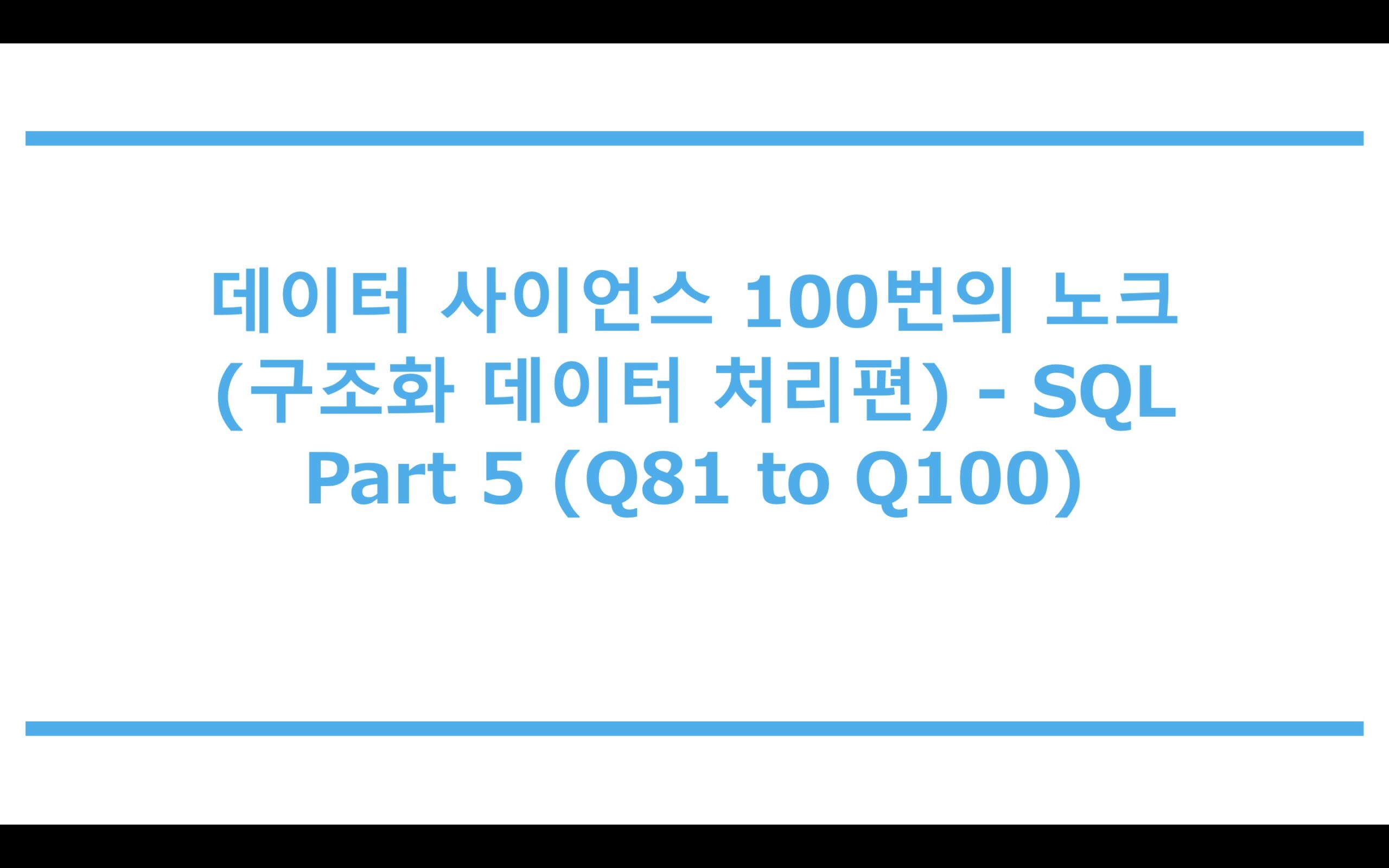 데이터 사이언스 100번의 노크(구조화 데이터 처리편)- SQL Part 5 (Q81 to Q100)의 해설입니다.