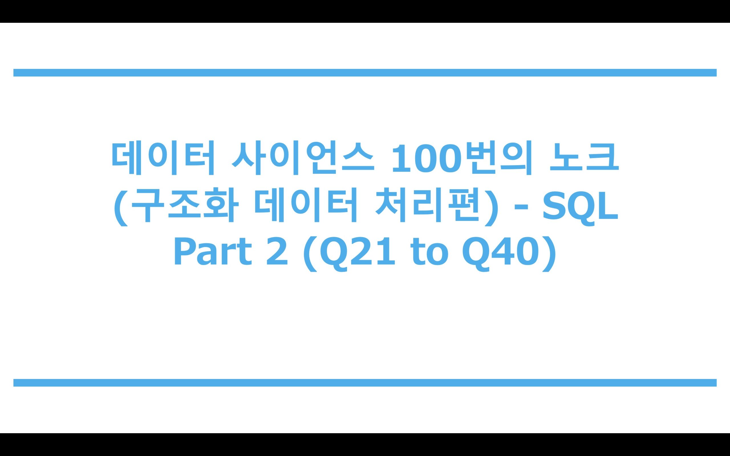 데이터 사이언스 100번의 노크(구조화 데이터 처리편)- SQL Part 2 (Q21 to Q40)의 해설입니다.