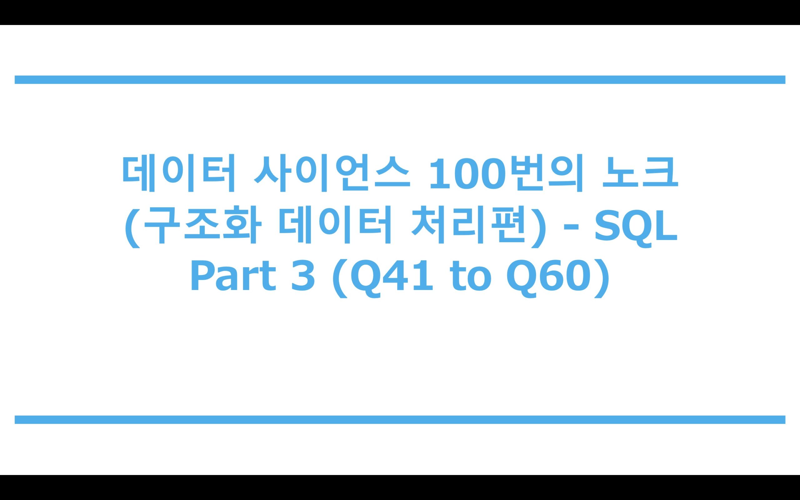 데이터 사이언스 100번의 노크(구조화 데이터 처리편)- SQL Part 3 (Q41 to Q60)의 해설입니다.